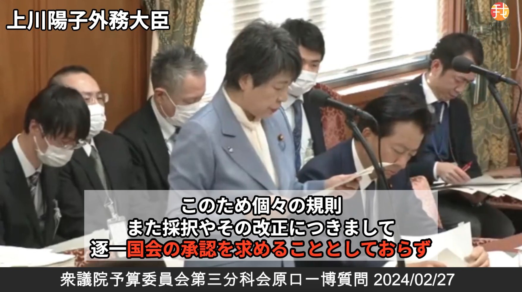 「国会承認を求めません 締結なしで拘束力を受け入れる」